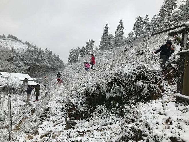 Khu vực Bản Khoang (Sa Pa) là một trong những nơi tuyết rơi dày nhất. Cây cối bị bao phủ một lớp băng tuyết rất dày. (ảnh Laocaionine.com).